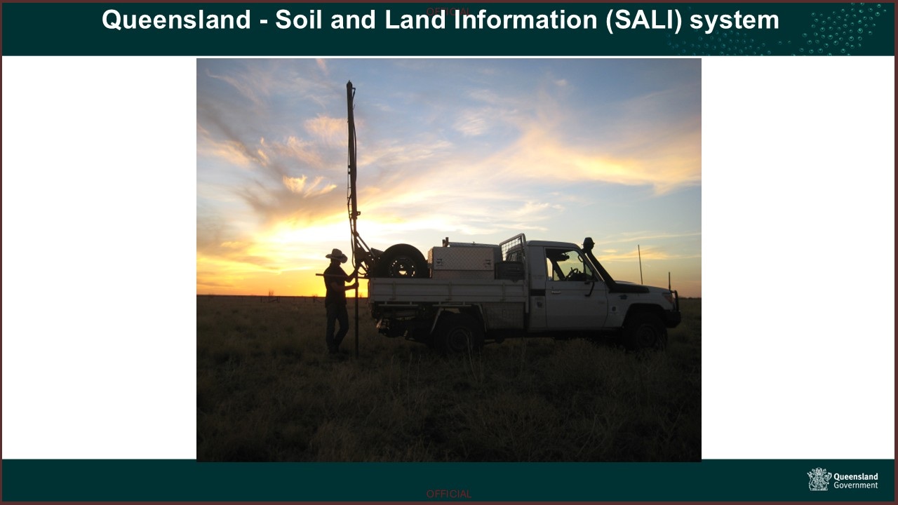 Evan Thomas (Queensland Department of the Environment, Tourism, Science and Innovation) presented Queensland’s soil data infrastructure, including the Sally Oracle database, multiple data tools, and the Queensland Globe interactive map. He demonstrated a land suitability assessment tool for reef catchments, harmonising frameworks and providing environmental risk reports. Expansion plans include statewide tools and integration with national datasets.