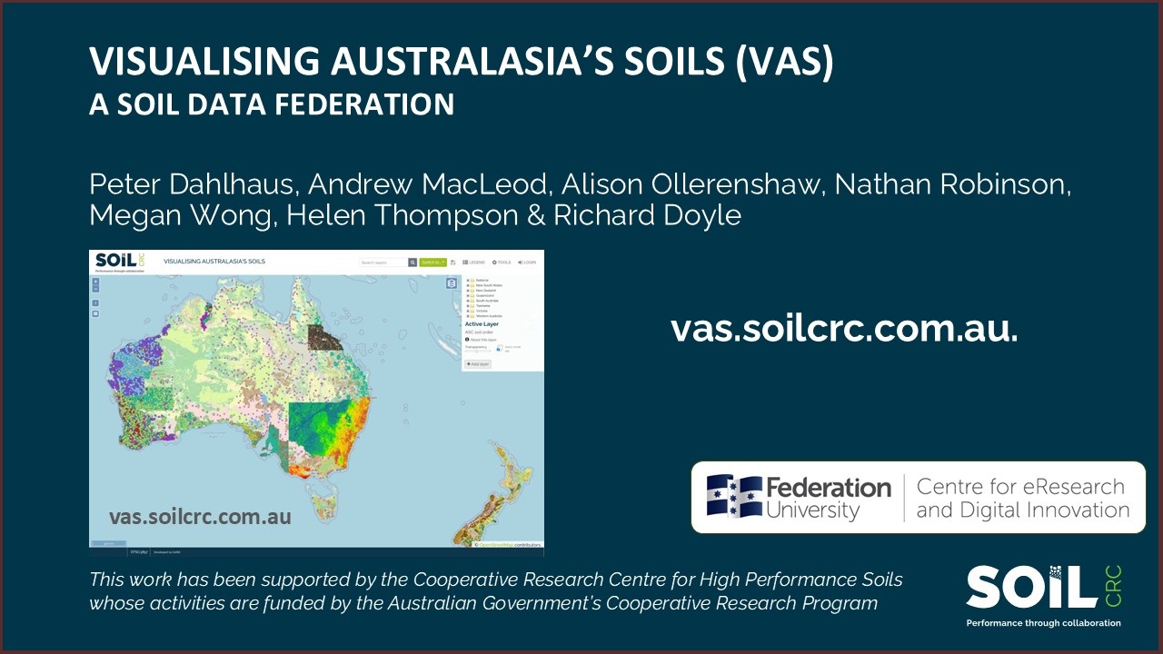 Peter Dahlhaus (Federation University Centre for eResearch and Digital Innovation (CeRDI)) discussed the Visualising Australia’s Soils (VAS) project, aggregating over 600 million soil moisture observations and diverse datasets. The project supports FAIR data principles, offers user-friendly filtering and visualisation, and includes tools like the rainfields tool for rainfall data. Future plans involve expanding data integration and interface improvements.