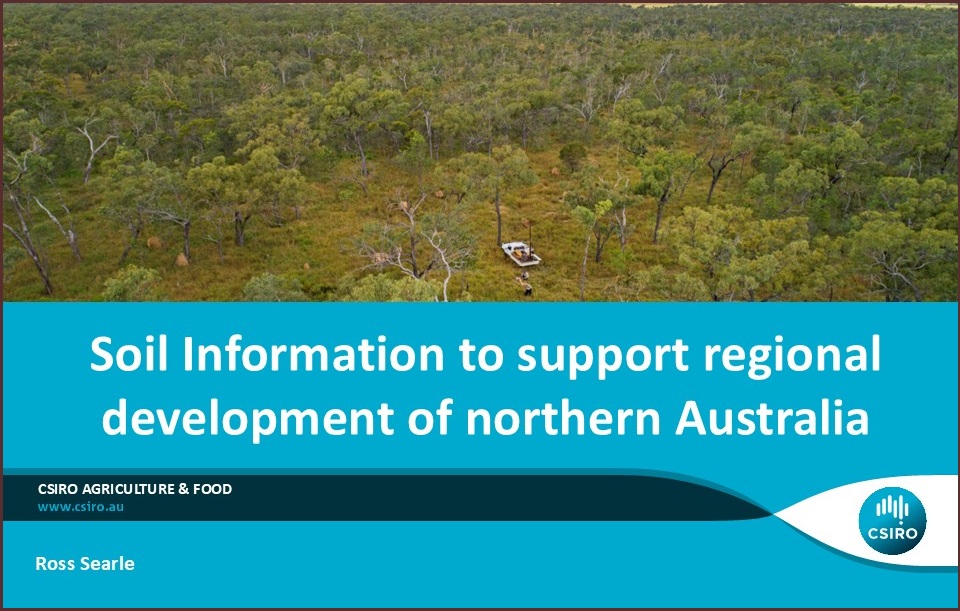 Ross Searle (CSIRO) discussed a large research project in Northern Australia involving over 200 scientists that assessed land suitability for agriculture by considering multiple aspects, including soil and water resources, ecology, indigenous aspirations, and socio-economics. The project combined existing and new soil data, digital soil mapping, and expert knowledge to create soil attribute maps and land suitability assessments for multiple crops. It highlighted the importance of reliability estimates, field validation, and data visualisation tools to inform water resource planning and policy.