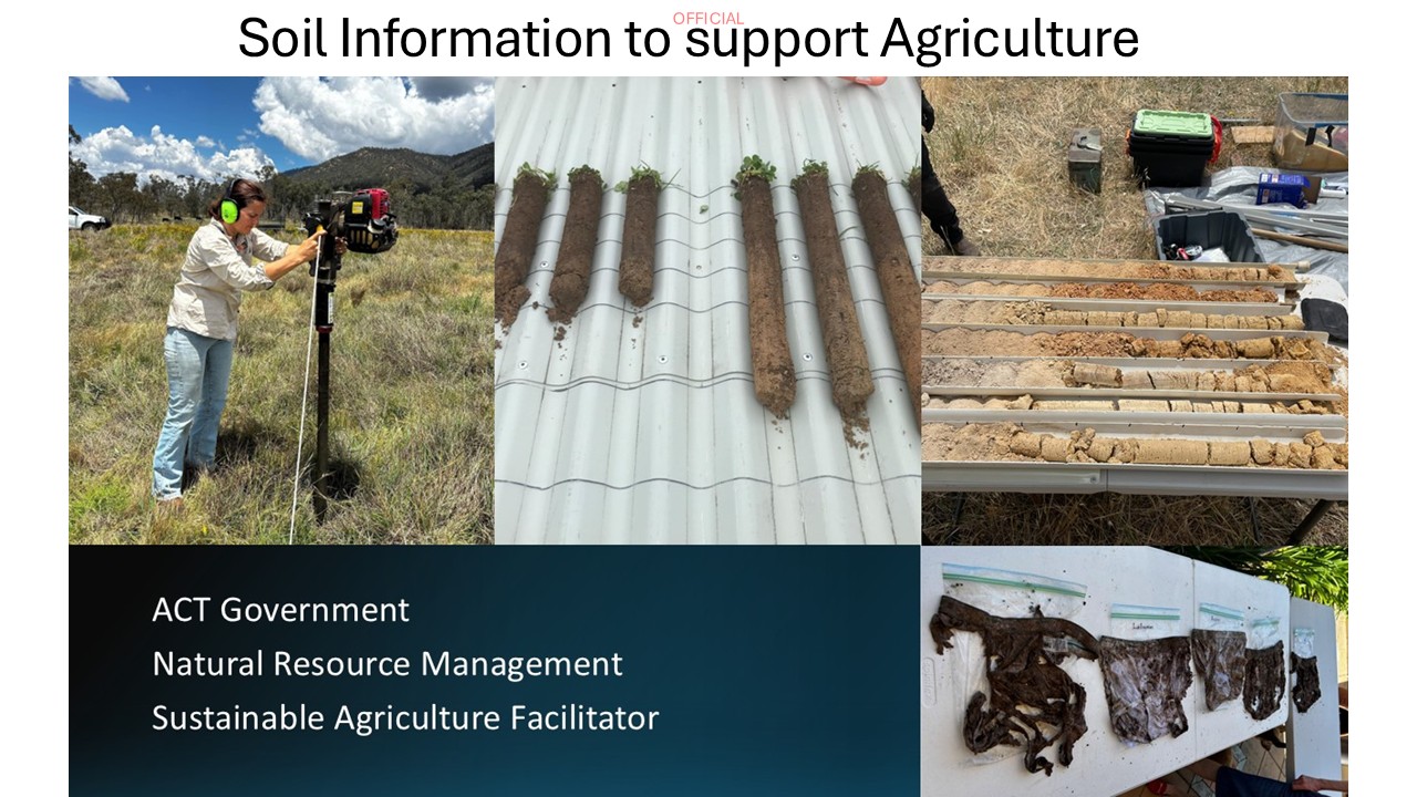 Jeni Cumberland (Australian Capital Territory (ACT) Natural Resource Management (NRM)) described soil conditions and farming in the ACT, noting challenges with acidic, shallow soils and the shift toward regenerative practices. She emphasised collaboration with stakeholders, comprehensive soil testing beyond surface layers, capacity building in grassroots organisations, attracting youth to soil science, and improving data accessibility for farmers.
