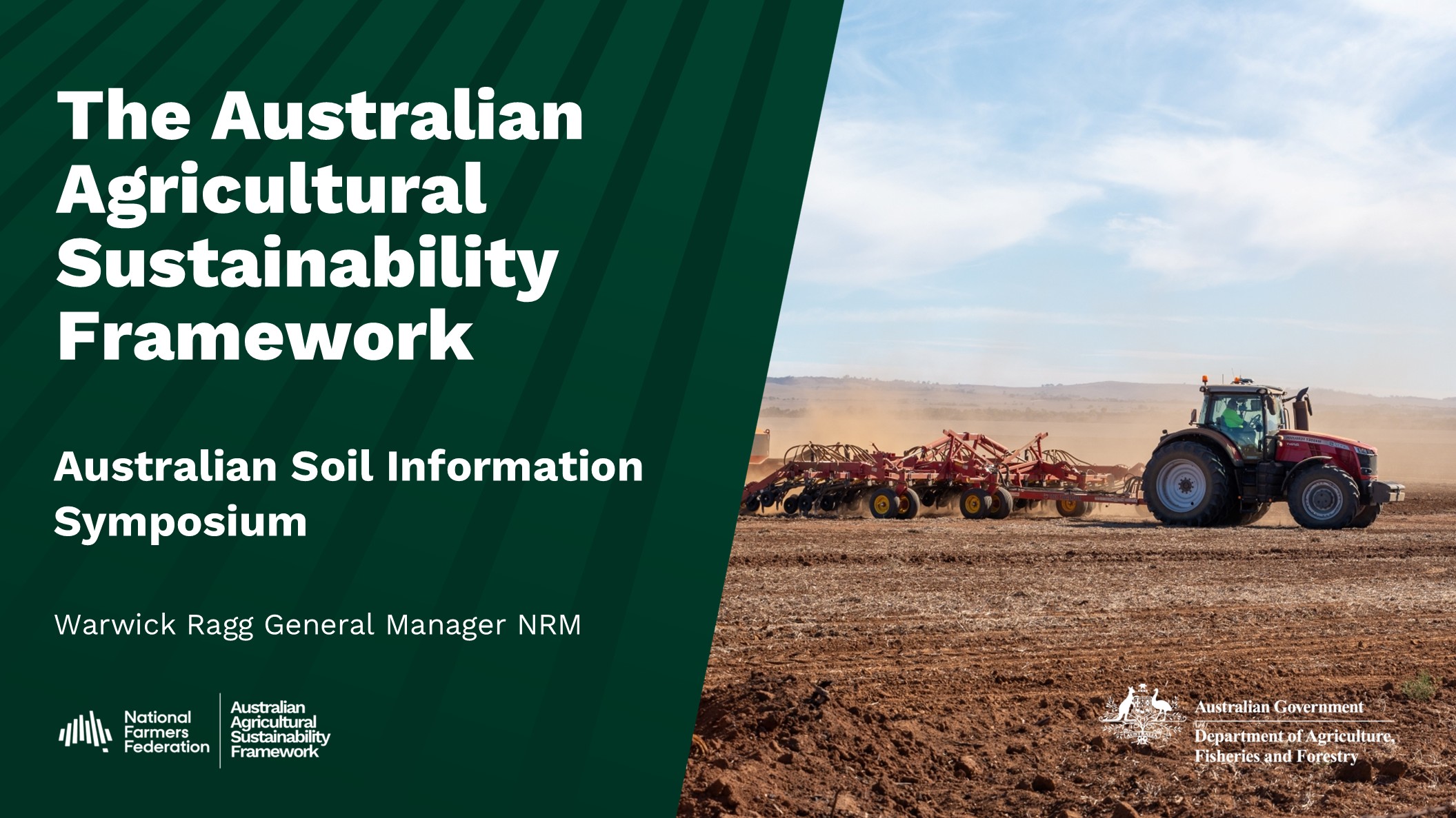 Warwick Ragg (National Farmers’ Federation (NFF)) outlined the Australian Agricultural Sustainability Framework (AASF), addressing sustainability challenges and environmental, social and governance demands. The framework includes 17 principles and 43 criteria, with soil health identified as highly material. He highlighted the need for a cohesive data ecosystem, governance mechanisms, high-quality data, and stakeholder collaboration to support sustainability measures.